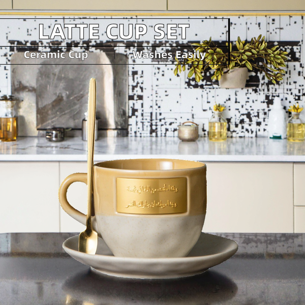 Wholesale Modern Style Latte Mug Saucer Set Ceramic Coffee Cup Middle Eastern Style Spoon for Enjoying Your Favourite Beverages$4.6