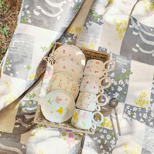 Lelyi French Retro Style Handmade Ceramic Cup Plate Set Small Fresh Coffee Mug Hand-Painted Travel Accessory for Back to School$4.28