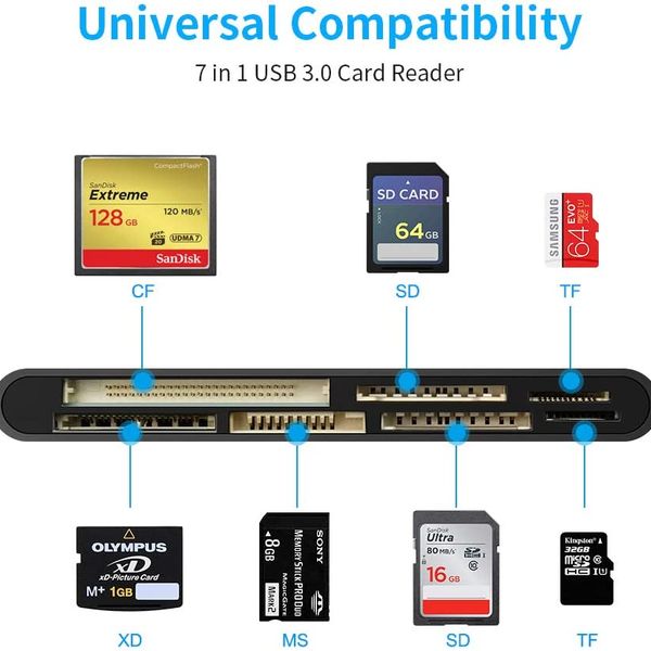 7 in 1 High-Speed USB 3.0 Card Reader/Writer External Installation Memory Card Reader for SD TF CF MS XD Cards$5.5