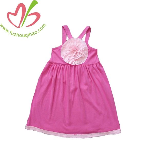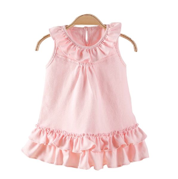Wholesale Boutique Children Clothes Sleeveless Dress Solid Pink Baby Girls Dress$3.59