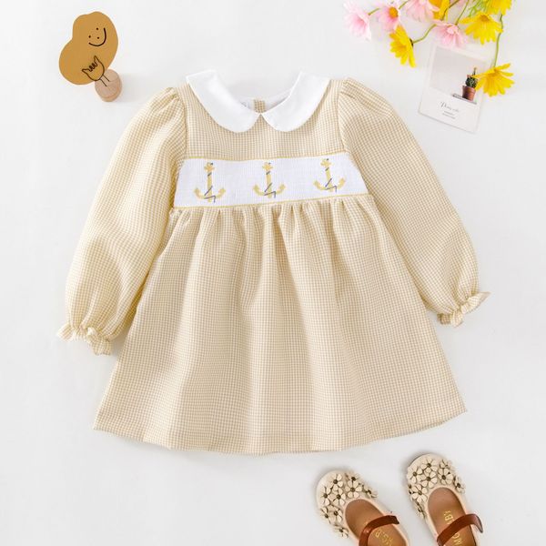 Hot Selling Children Clothing Girls Dresses Spring and Autumn Long Sleeve Children Skirt Hand Smocked Toddler Baby Girls Dress$7