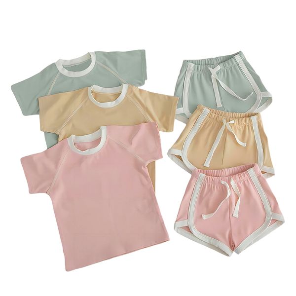 Trendy Style Children Clothing Summer Children Solid Color Short-Sleeved Shorts and Child Clothing Set$5.09