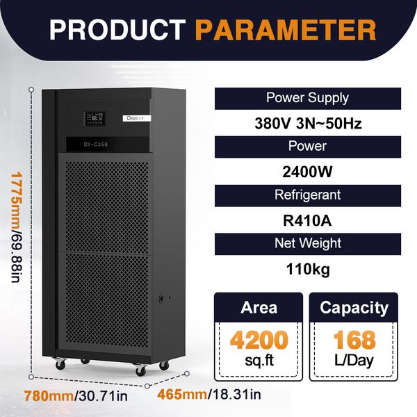 DY-C168 168L Large Room air Cleaning Dehumidifier Commerical Industrial Dehumidifier for Wholesale$680