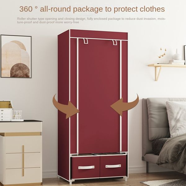 Wholesale Fabric Closet Easy to Install Amazon Folding Chinese Fabric Closet Wardrobe With Two Drawers for Living Room House$6.35