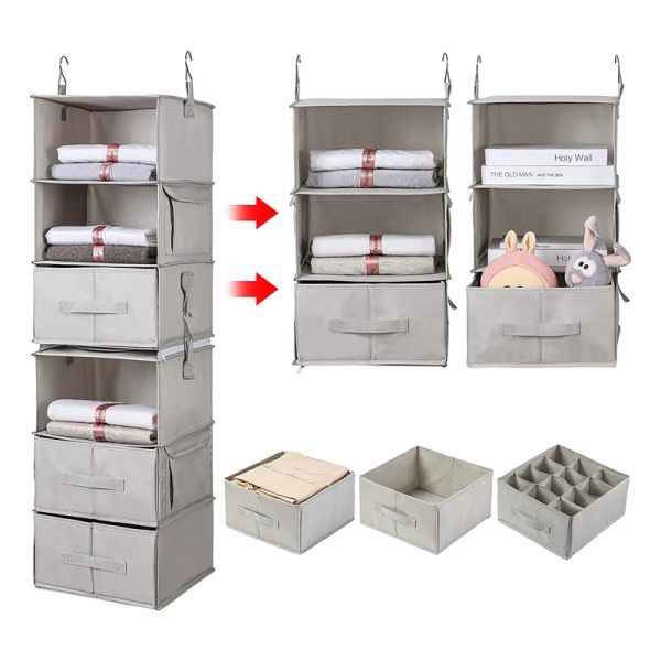 4-Shelf Hanging Closet Organizer with Fabric Drawers PP Storage Hanging Closet Clothing Organizer for Home Use$2.89