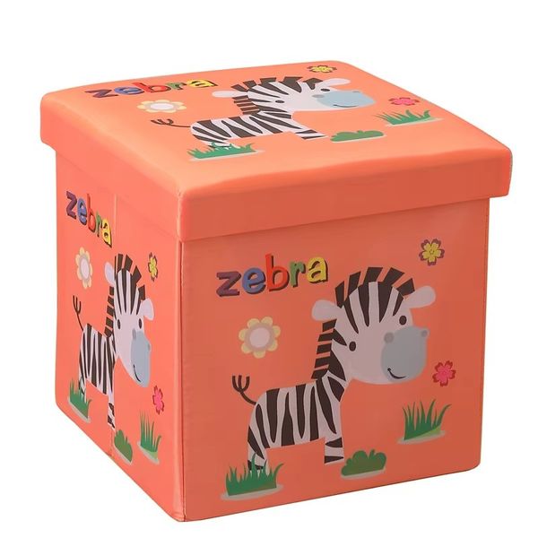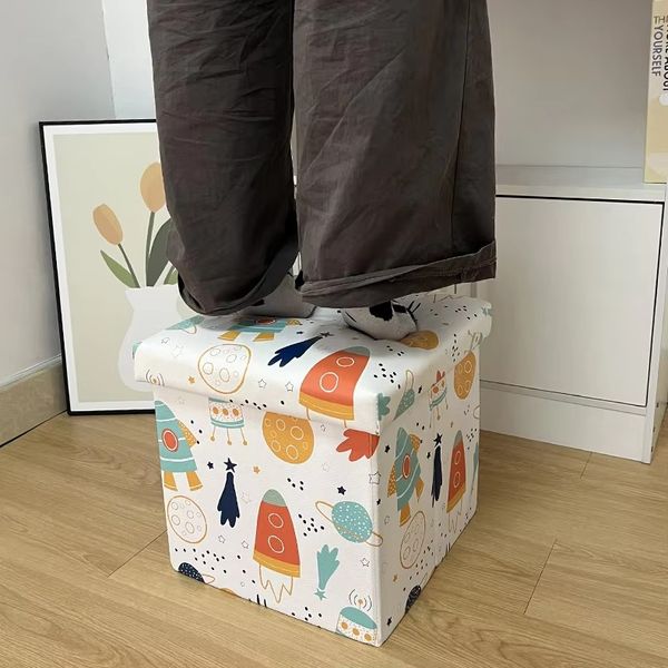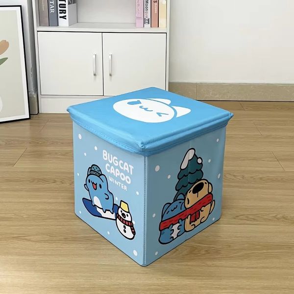 Cartoon Collapsible Toys Storage Ottoman Box Lid Multi-Function Storage Solution for Hotels Farmhouses Apartments Villas$3.4