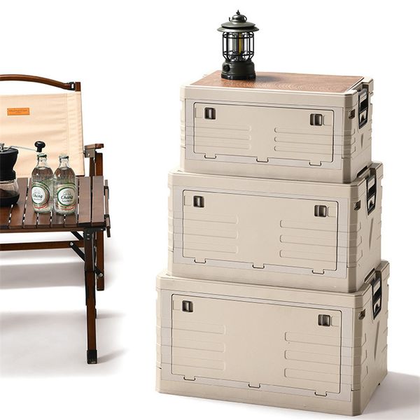 Outdoor Plastic Wooden Cover Collapsible Storage Box for Camping$7