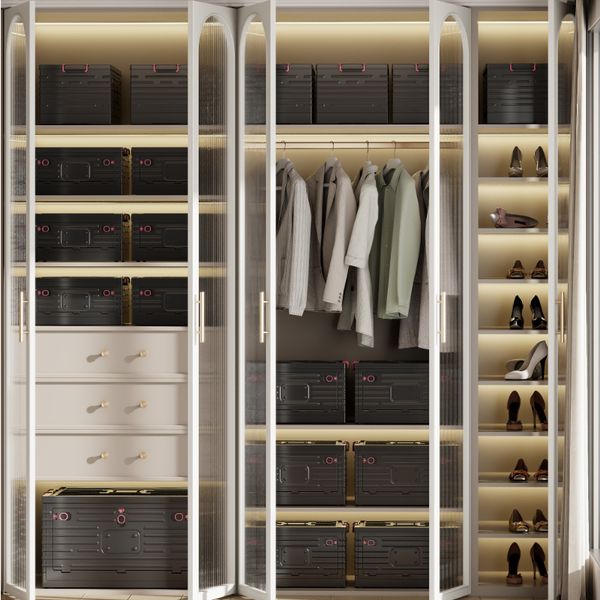 Stacking Foldable Plastic Storage Box Modern Rectangle Design Plastic Foldable Storage Box Side Open Folding Cabinet$5.5