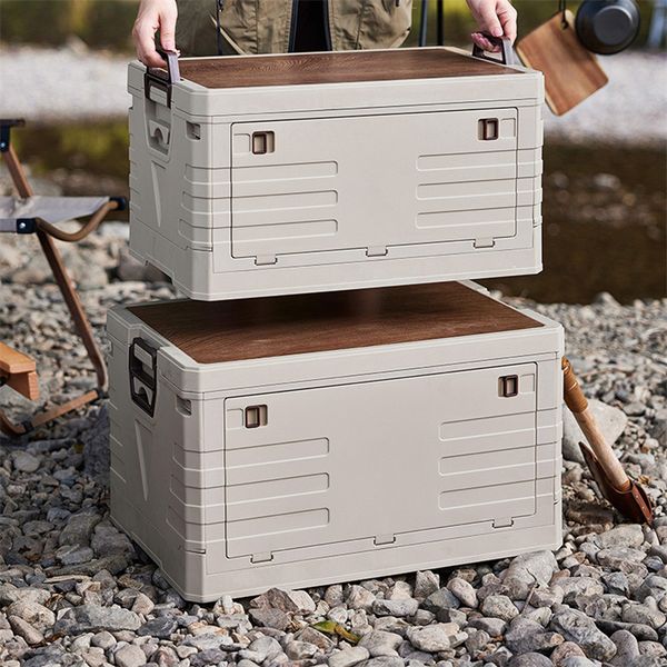 Korean Style Folding Plastic Box Camping Organizer Foldable Storage Container with Wooden Lid$7
