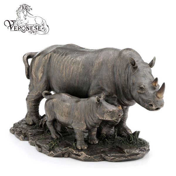 VERONESE DESIGN Luxury Hand-painted RHINO and Baby Rhino Art & Collectible Resin Figurine Home Decoration$40