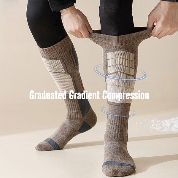 Professional Men Winter Wool Ski Socks Thickened Terry High Tube Warm Compression Long Socks Wool Cushioned Socks$1.54