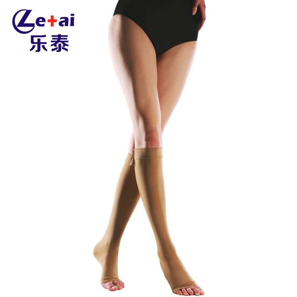 Professional Manufacture 20-30mmHg Black Medical Graduated Compression Open Toe Knee High Stockings for Varicose Veins$2.65