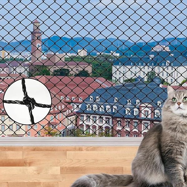 Cat & Dog Anti-Fall Balcony Safety Net Black Nylon Mesh Fence (10x26ft) Custom Cutting$12.2