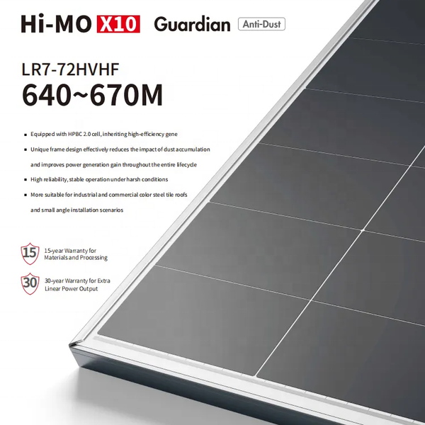 Hi-Mo X10 Guardian N-Type Solar Panels Anti-Dust LR7-72HVHF 640~670M 640w-670w Power Range$0.08