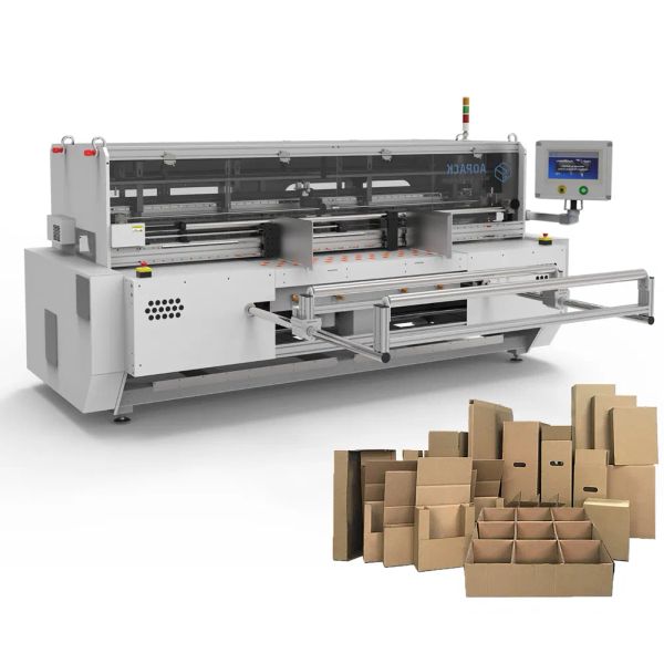 The company's core product line includes fully automatic all-in-one machines such as the BM2508-Pro, BM3000-HD, and BM1800-Mini. These compact systems integrate board feeding, slotting, scoring, creasing, slitting, trimming, and printing into a single pass, supporting over 150 pre-programmed box styles without the need for physical molds. Their heavy-duty models can process cardboard from E-flute to AAA-flute (3 to 7 ply) with widths up to 3000mm. Aopack also provides auxiliary equipment like hot melt gluing machines and specialized packaging solutions for the food and medical sectors.