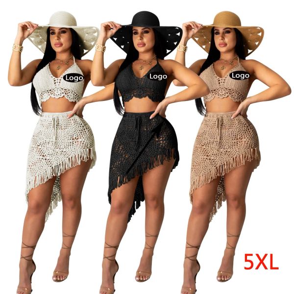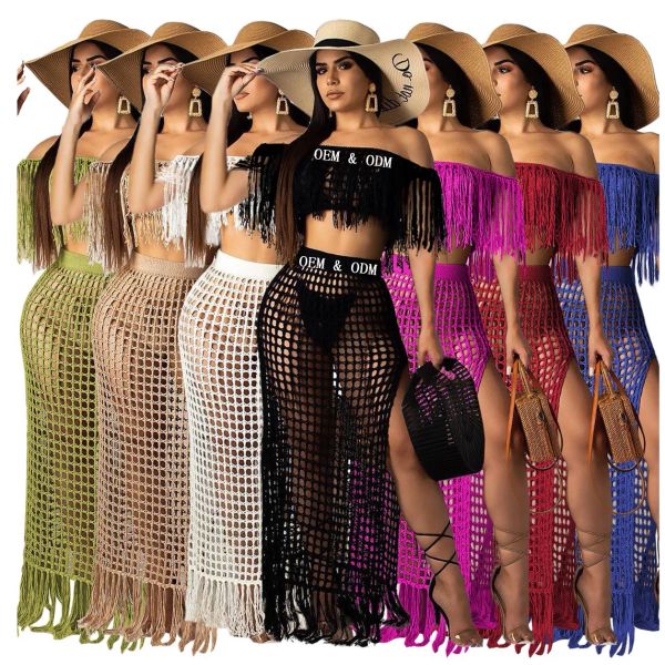 3D Custom Women Crochet Tassels Beach Skirt Cover up Hollow Out Sarongs See Through Knit Summer Bikini Coverup Swimsuit$4.9