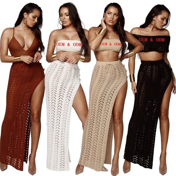 Sexy European and American Women's Nightclub Hollowed Out Perspective Nightclub Knitted Skirt Beach Two Piece Suit$10