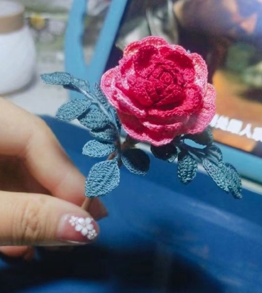 Rose Cotton Crochet Flower Brooch Jewelry$10