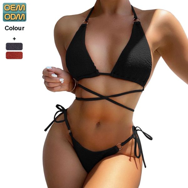 3D Custom Logo Low Moq Free Sample Women 2 Piece Swimsuits Drawstring Knot Front Bathing Suit Beachwear String Bikini Sets$3.5