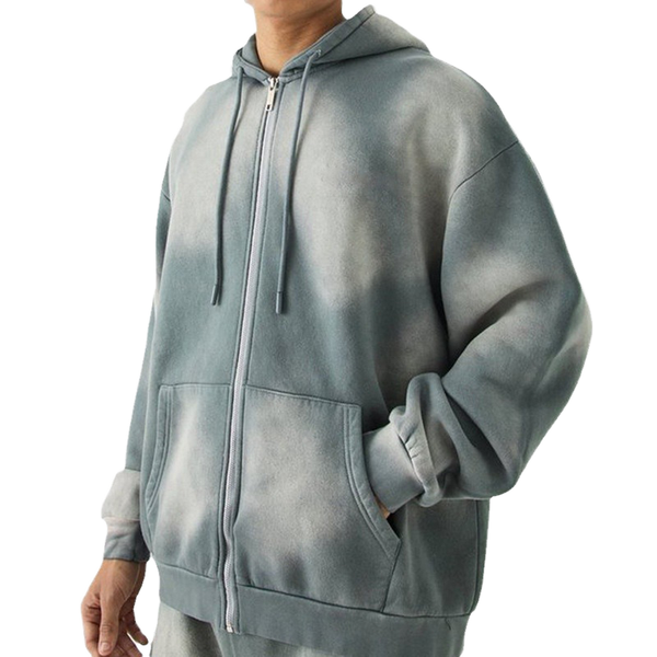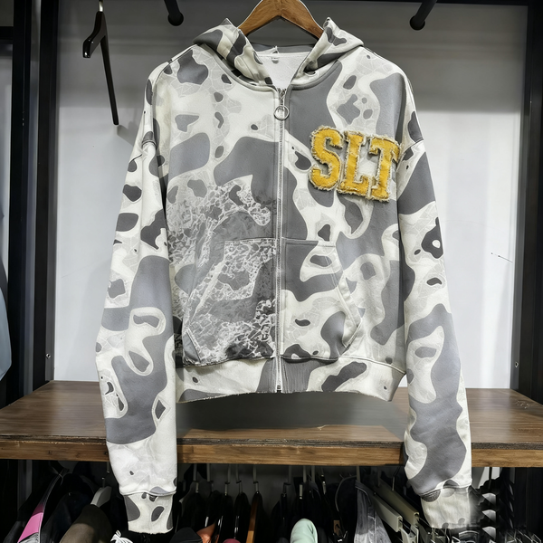Custom Vintage Washed Allover Printed Heavy Weight Cotton Zip up Hoodies Men Custom Applique Embroidery logo Patched Camo Hoodie$13.5