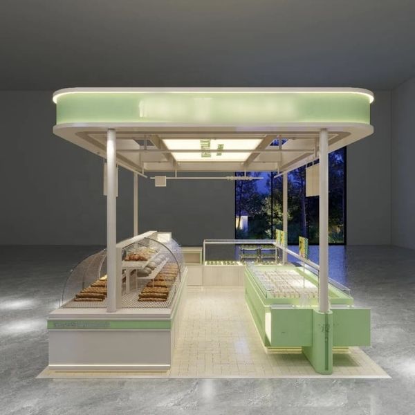 Modern Customized Juice Ice Cream Fast Bar Furniture Convenient Fast Food Kiosk Mall Kiosk Wood Panel Commercial Furniture$5500