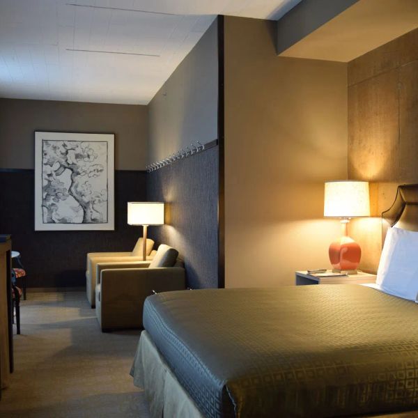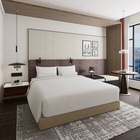 Modern Wood Panel Bedroom Set James Hotel Sonesta Lifestyle Hotel Guestroom Furniture-Bed & Furnishings$499