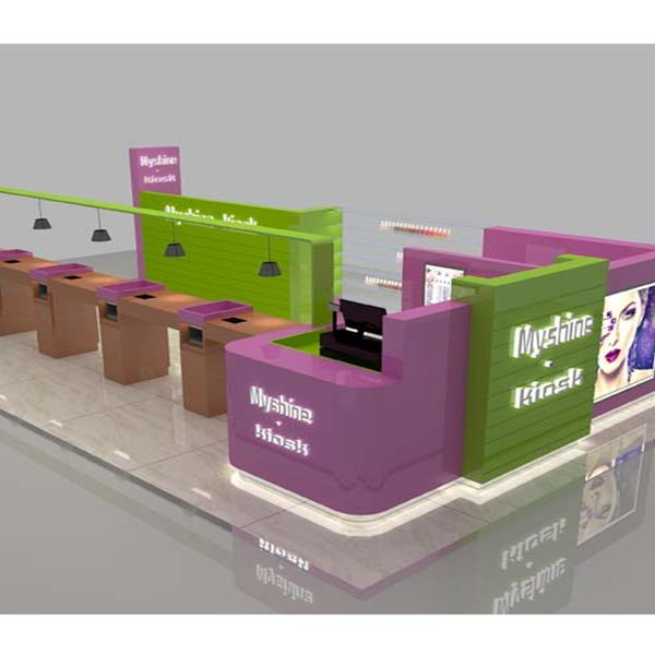 Modern Shop Manicure and Pedicure Furniture Nail Kiosk Design Glass Beauty Salon Furniture Customized Pink Salon Furniture Set$300