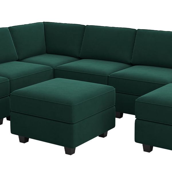 Modular Sectional Sofa with Storage Seat Oversized U Shaped Couch with Reversible Chaise Velvet Sofa Set with Ottoman Green$2099.99