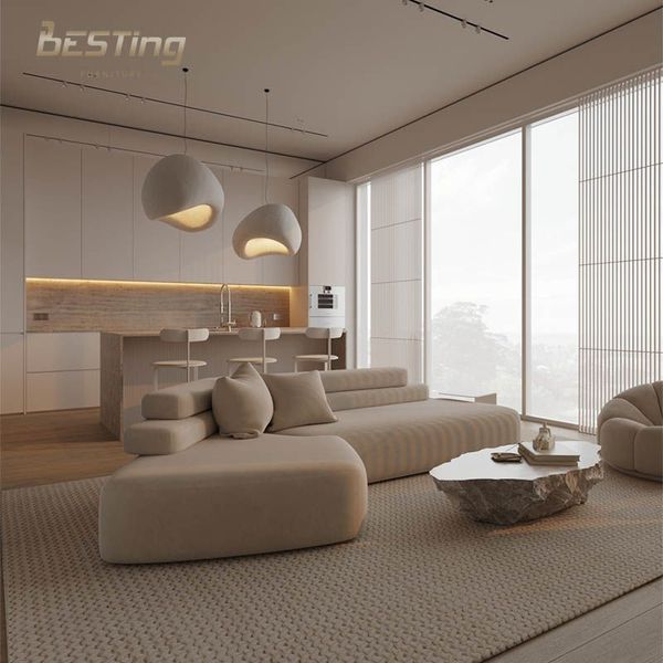 American Modern Luxury Down White Sofa Set Furniture Living Room Comfortable White Chaise Longue Sectional Cloud Sofa$550