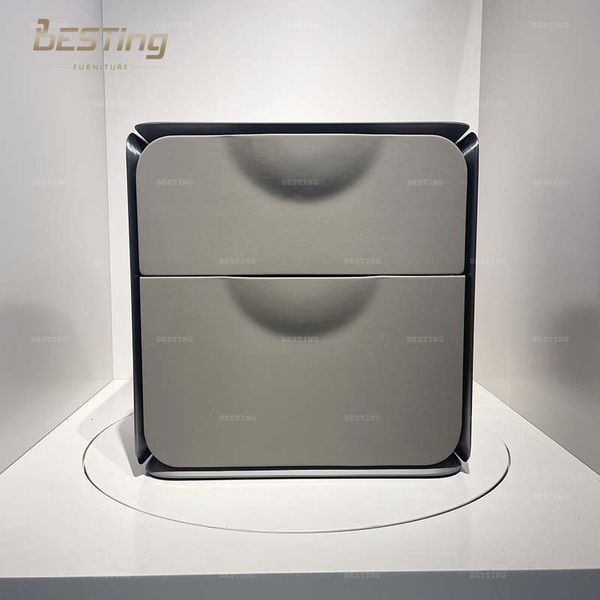 Modern Minimalist Design Metal Frame Bedside Table Gray Glossy Lacquered Solid Wood with Two Velvet Drawers Bedside Table$358