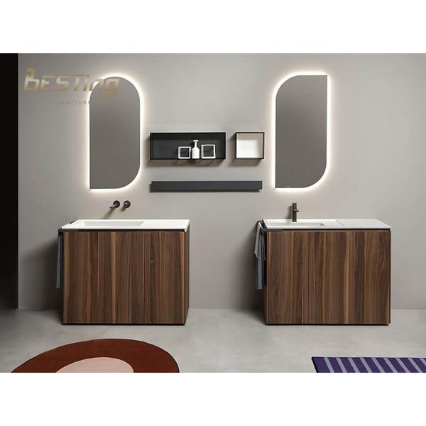 Modern Simple Wood Grain Style Hotel Bathroom Cabinet Single/double Sink with Mirror Washbasin Bathroom Cabinet$68