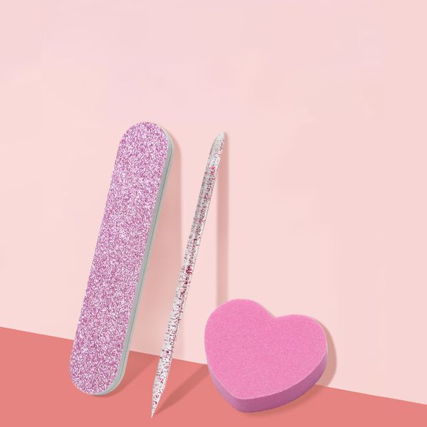 Nail Tool Sparkling Powder Three Piece Set Crystal Rod Heart Shaped Tofu Block Polishing and Trimming Wood Chip Filing Strip Set$0.13