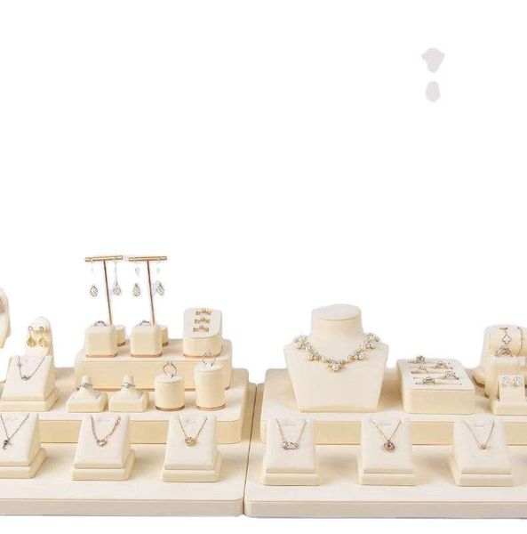 Jinsky Custom Design Classic Luxury Design Custom Beige Jewelry Showcase Set for Earrings Ring Necklace Jewelry Display Set$3.17