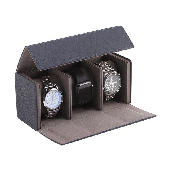 New Design Luxury Handmade 3 Slots PU Leather Watch Box with Velvet Lining OEM ODM Custom Logo$8.79
