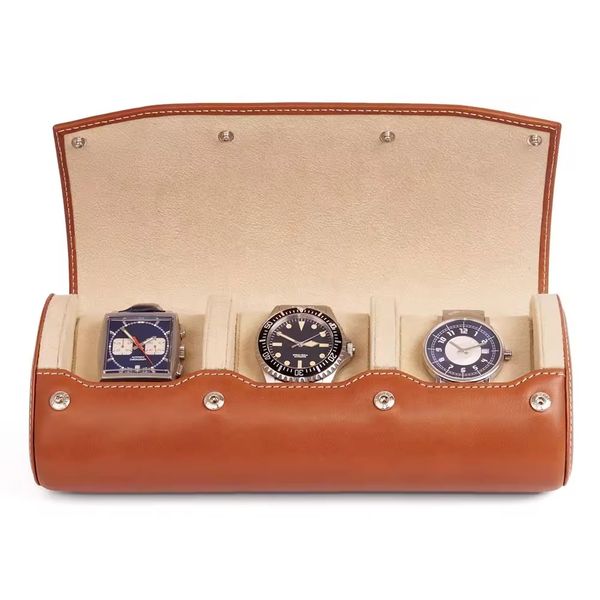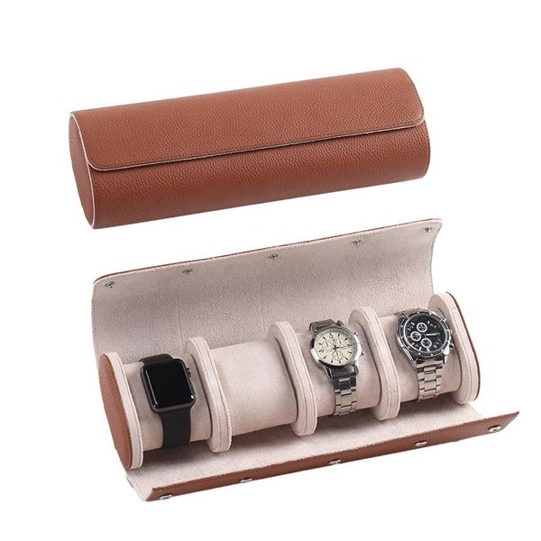 Man's Stylish Portable Wristwatch Protection Custom Storage Box Watch Roll Case 4 Slots PU Leather$9.36