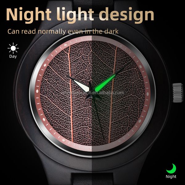 Custom Logo Ladies Luxury Wooden Wristwatch with Elegant Leaf Dial Design Quartz Watch for Women$12