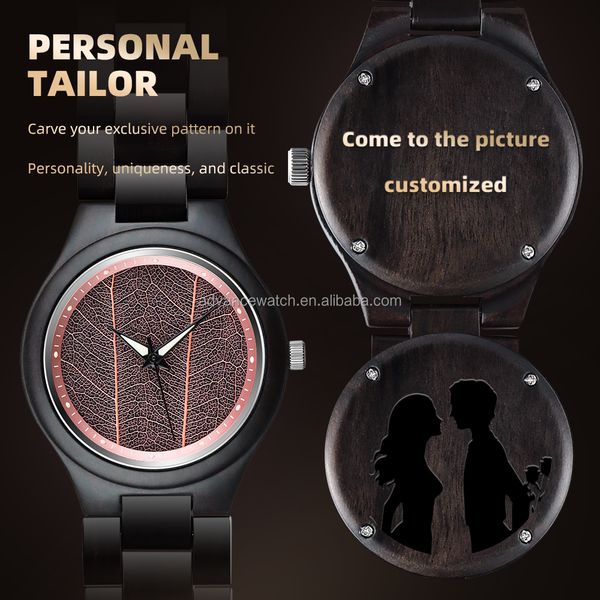 Customized 2024 Women's Antique Ebony Wood Watch Stylish New Arrivals with Arabic Numerals Engraved Wrist Watch$12