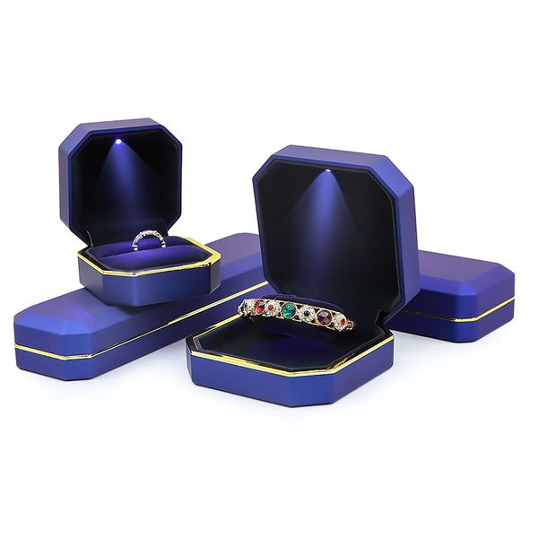 Wholesale LED Light Luxury Jewelry Box Ring pendant bangle bracelet Packaging octagon shape small quantity customize accept$1.78