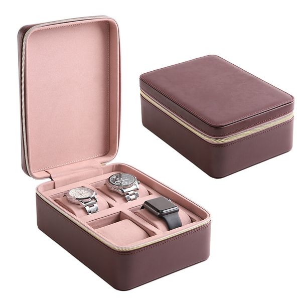 OEM ODM Custom 4 Slot Watch Box Luxury PU Leather Case Velvet Lining Durable Zipper Closure$10.18