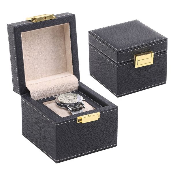 Luxury PU Leather Single Watch Box Handmade Metal Clasp Waterproof Portable Travel Case Custom Logo$5.7