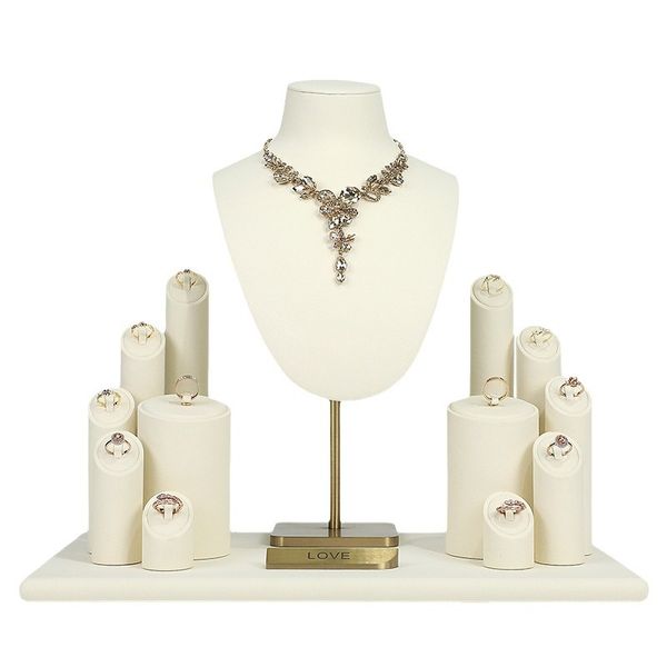 Custom Beige White Microfiber Necklace Pendant Display Props Live Jewelry Show Props Including Earrings and Ring$49