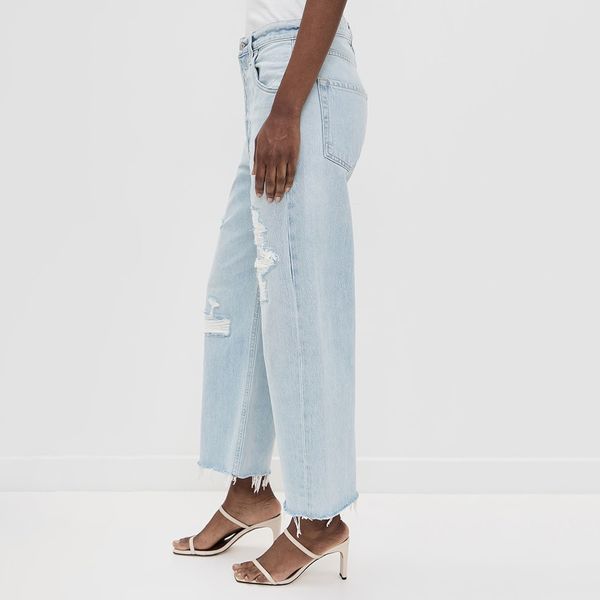 Factory New Womens Mid Waisted Ripped Frayed Washed Denim Wide Leg Pants Comfortable Fabric Stylish Trendy Cropped Pants$6.8
