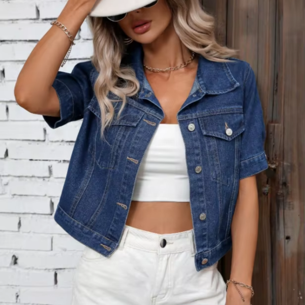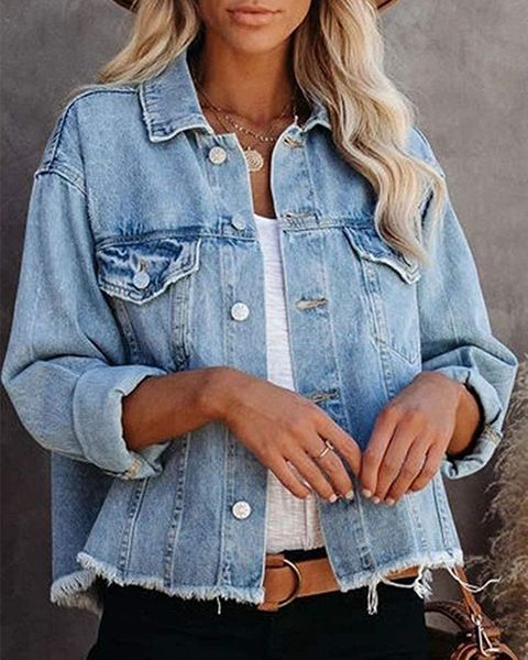 Women Blue Denim Jacket Custom OEM ODM High Quality Fashion Design Non-stretch Denim Jacket$14.2