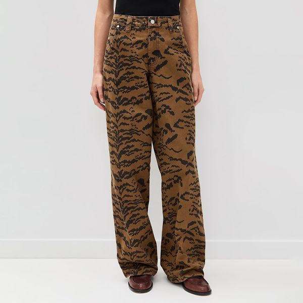 New Arrival High Waisted Womens Retro Tiger Print Denim Wide Leg Pants Comfortable Fabric Stylish Versatile Daily Jeans for Work$10