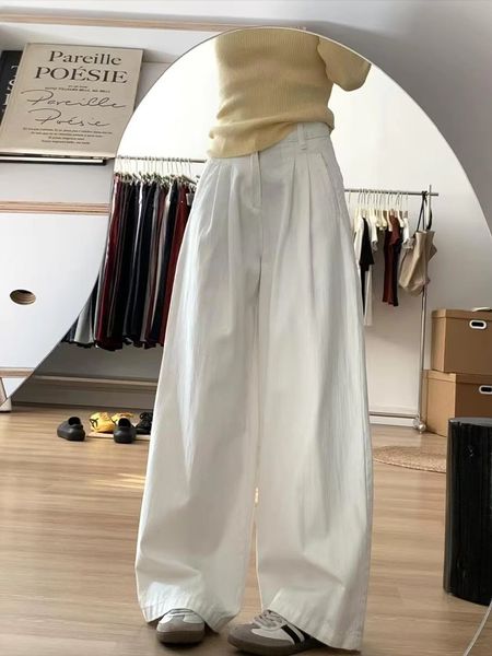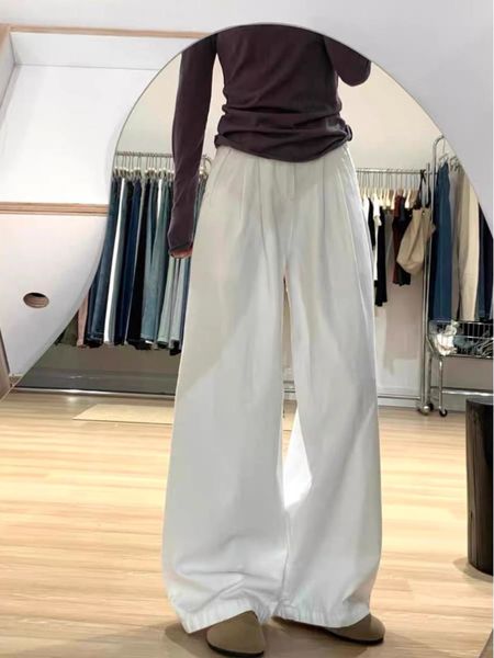 Best Selling Product White Denim Wide Pants High Waisted Loose Fitting Denim Wide Leg Trousers Fashionable Floor Length Denim$4