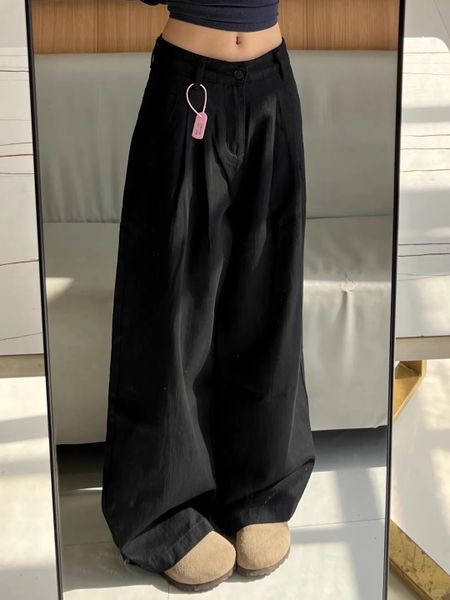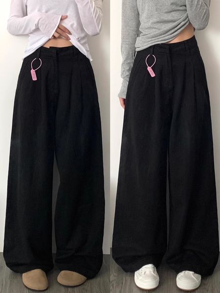 High Quality Classic Black Women's Wide Leg Denim Trousers High Waisted Denim Wide Leg Pants Fashionable Wide Leg Breathable$4