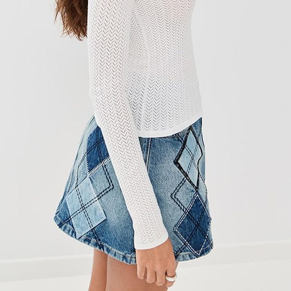 High Quality New Womens High Waisted Diamond Patchwork Washed a Line Denim Mini Skirt Retro Unique Stitched Trendy Midi Skirt$5.4