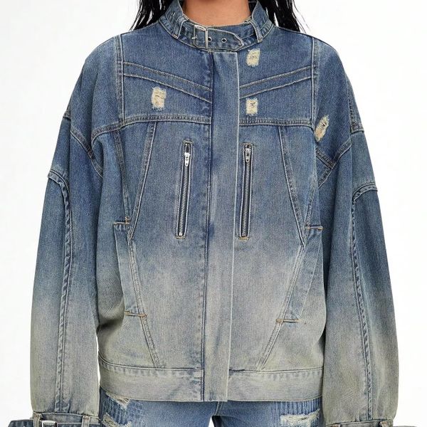 Woman High Quality Pocket for Denim Tears Hoodie Jacket Custom Cropped Pullover Women Oversize Cotton Denim Jacket$14.2