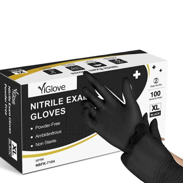 5 6 9 10 Mil Disposable Black Chemical Industrial Medical Examination Heavy Duty Powder Free Nitrile Safety Gloves 100 Pcs$0.02