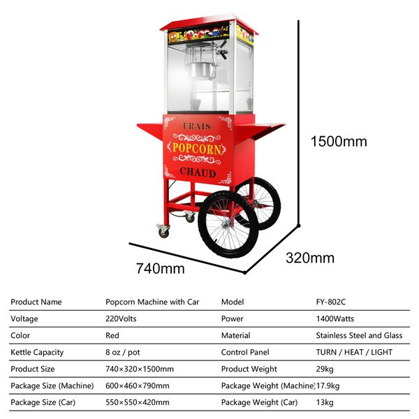 Factory Price Electric Automatic Popcorn Trolley Cart Machine Stainless Steel Popcorn Machine With Cart$98